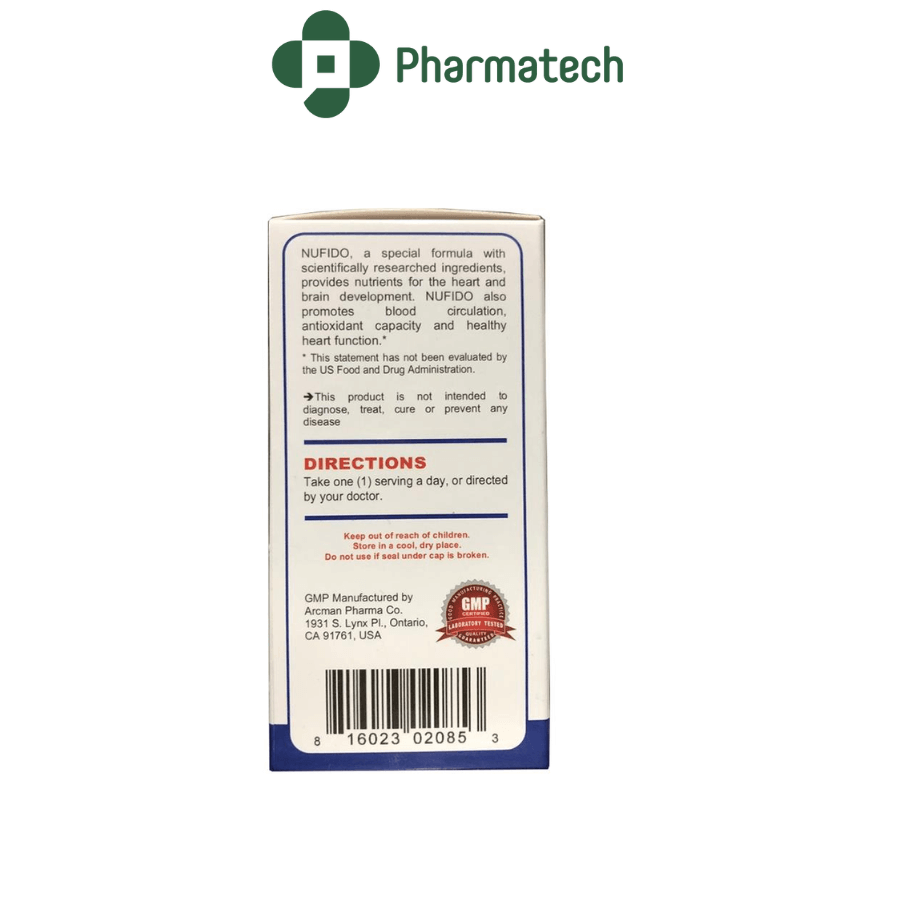 Thuốc Nufido 30 viên được xuất xứ tại Mỹ, với số đăng ký 49701/2017/ATTP-XNCB, được bào chế và đóng gói theo quy cách hộp 30 viên nang.