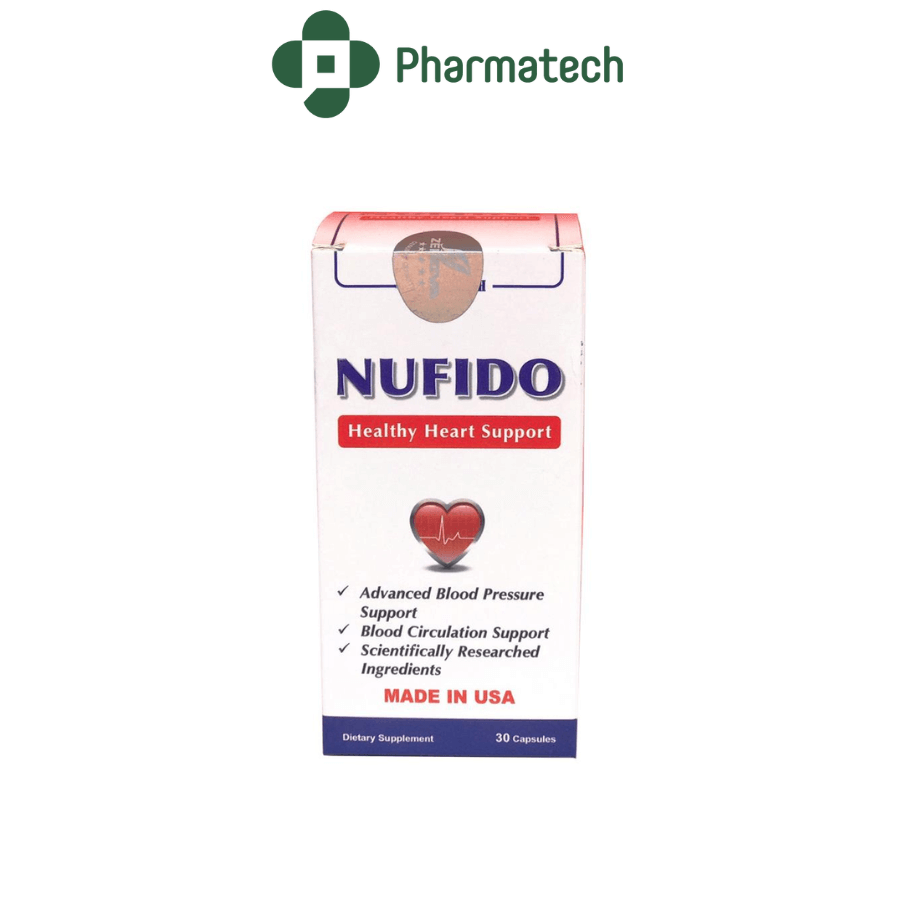 Thuốc Nufido 30 viên là thực phẩm chức năng hỗ trợ tăng cường sức khỏe hệ tim mạch, hỗ trợ đào thải các gốc tự do có hại, hỗ trợ làm bền thành mạch. Sản phẩm phù hợp với người cao tuổi, người muốn phòng ngừa và điều trị các bệnh về tim mạch.